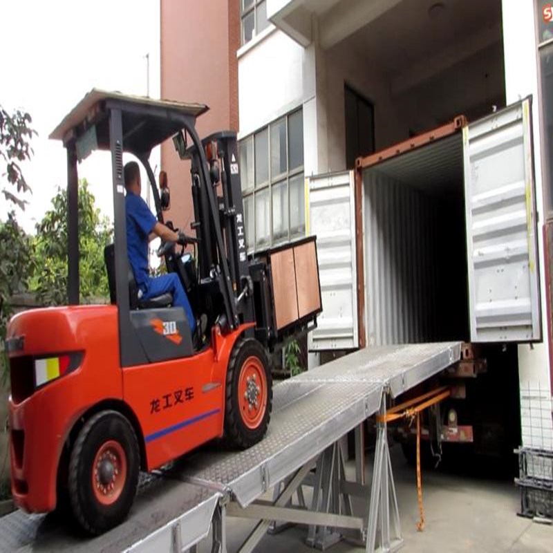 盐城市嘉丰机械制造有限公司位于江苏省东海之滨,从事强度铝合金轻量化研究多年,制造久达大象牌强度重型铝合金坡道,按照市场需求,从原来的铝合金跳板,到拼接款铝合金跳板,去年开始生产铝合金登车桥,也叫移动式登车桥、升降式登车桥、货车卸货平台等。登车桥多用于无装卸设备的货台或流动装卸场所,是与叉车配合使用的货物装卸的配套工具,借助登车桥,叉车能直接驶入货车车厢内部进行批量装卸作业。只需要两人操作,不需动力电源,即可实现货物的快装卸。这即可以降低生产成本,减低劳动强度,又提高了装卸作业效率,减少了劳动时间,获取了大的经济效益。